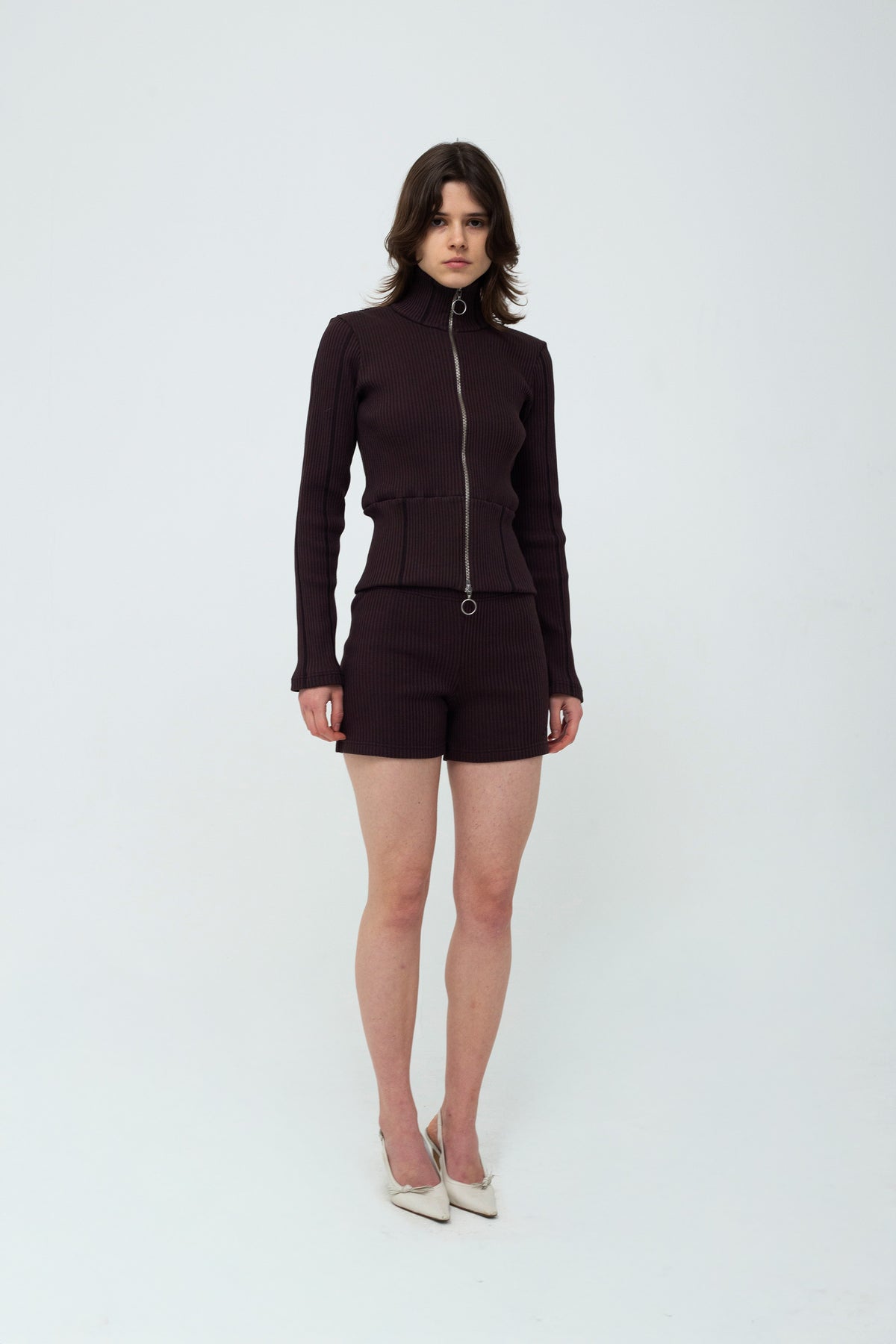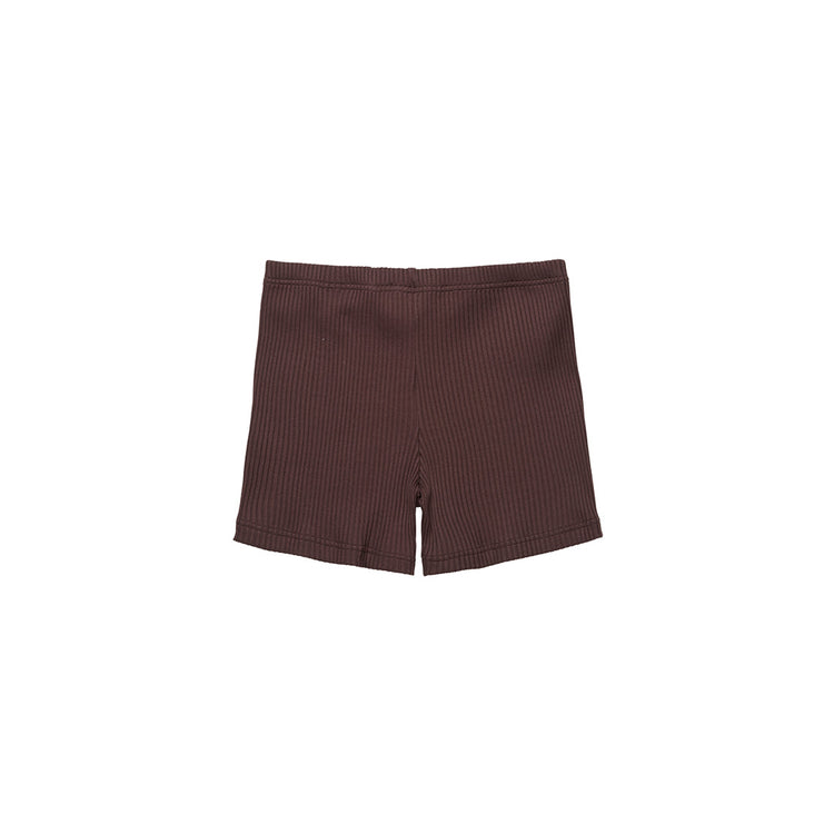 The Soffi Brief Shorts are tight-fitting mini shorts featuring an elastic waistband. The shorts are crafted from a rib cotton fabric in brown.
